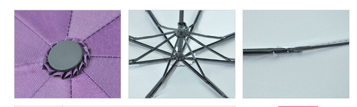 雨傘的設計者一直孜孜以求的不斷改良使用者的體驗,超輕三折商務傘采用高檔滌綸色膠布,手感體驗品質極佳,防紫外線的效果更加有效降低傘內的溫度。安全式透明蜂巢,倒桿六棱中棒,傘架的結構更加穩(wěn)固,增加了使用者的良好體驗。